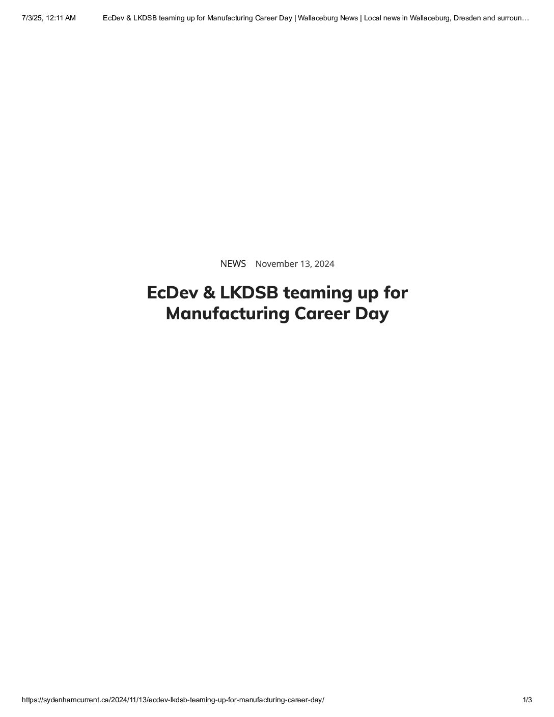 - Purpose: Chatham-Kent Manufacturing Career Day was hosted on November 8, 2024, in partnership with the Lambton Kent District School Board. The purpose was designed to dismantle outdated perceptions of the advanced manufacturing sector to the future workforce and those soon entering post-secondary education.