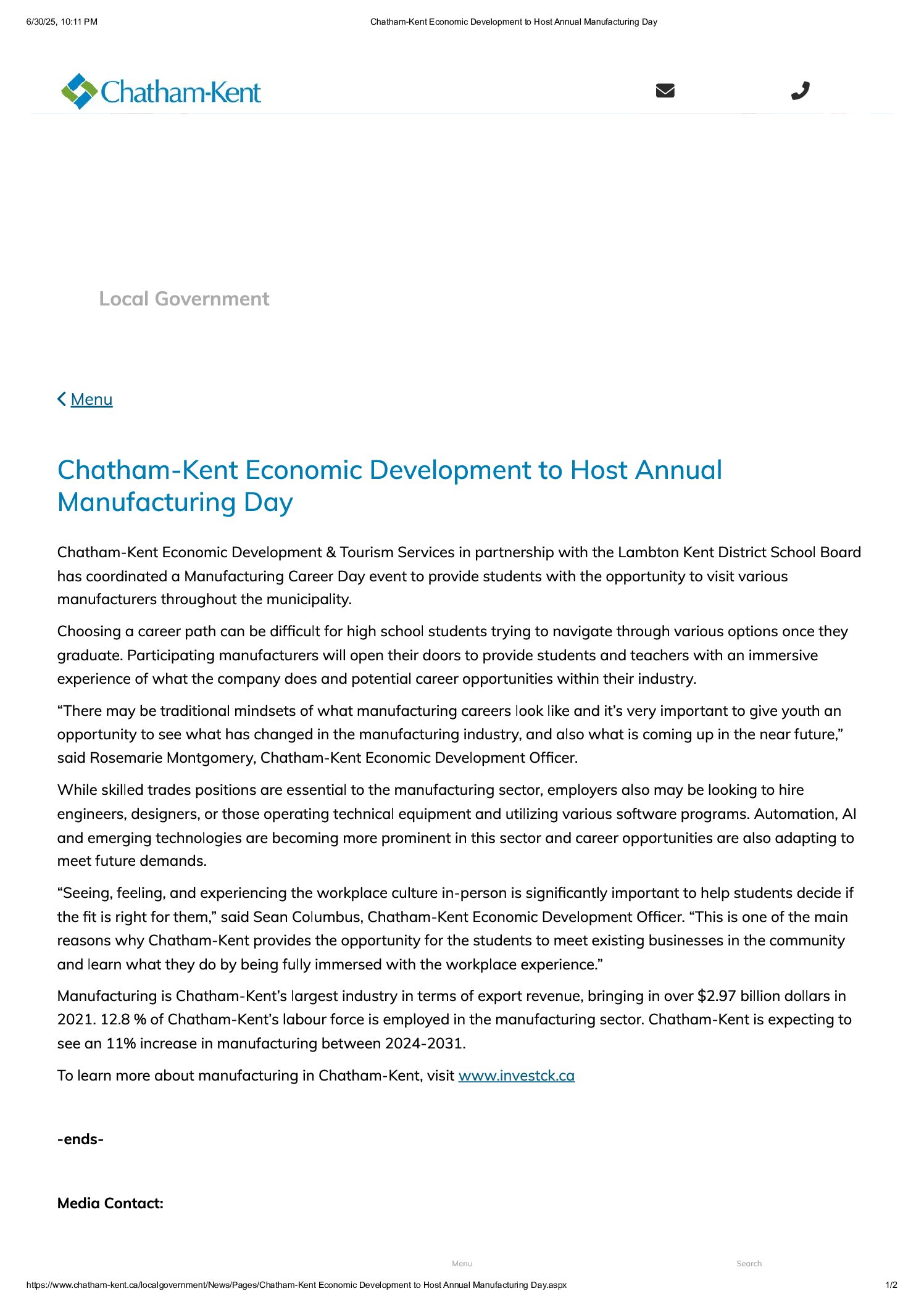 - Official municipal press release to educate about the purpose of Manufacturing Career Day.