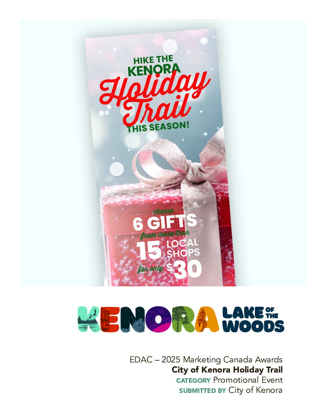 In 2024, the City of Kenora worked with Wake Marketing and partnered with the Harbourtown BIZ (the business improvement area for the downtown core) to develop and launch the Holiday Trail. The Kenora Holiday Trail is a