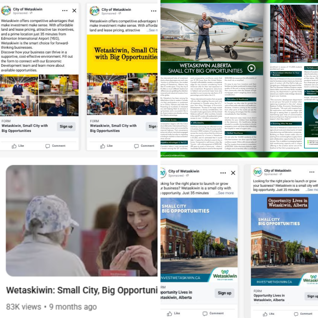 Strategically, the campaign promoted Wetaskiwin’s lower cost of living, proximity to major transportation corridors, and supportive small-city lifestyle with elements that resonate with families, entrepreneurs, and investors alike.