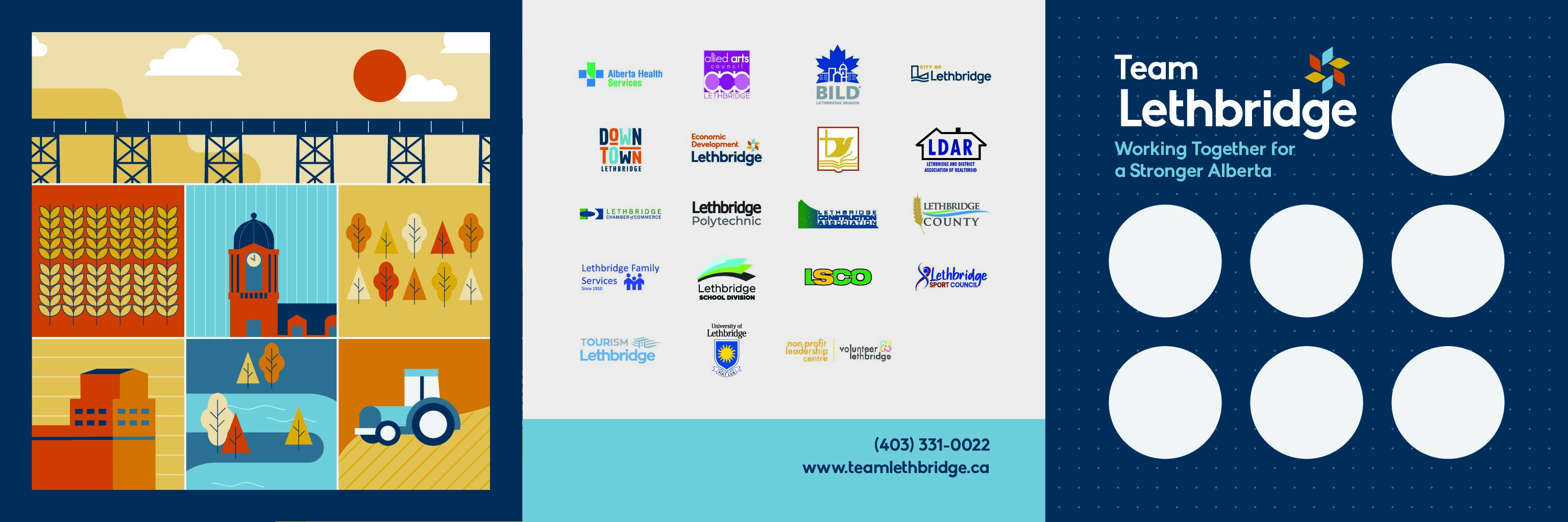 The brochure was given to all Team Lethbridge attendees as a reminder as to why meeting with elected officials on behalf of our residents is so important and that the mission is intended to be for the good of the community and not the needs of any particular organization attending. The colour scheme of the Lethbridge: Brighter Together community brand was used to help emphasize that this is a Lethbridge brochure, with Lethbridge opportunities, and Lethbridge colours and the message being delivered was Lethbridge specific.